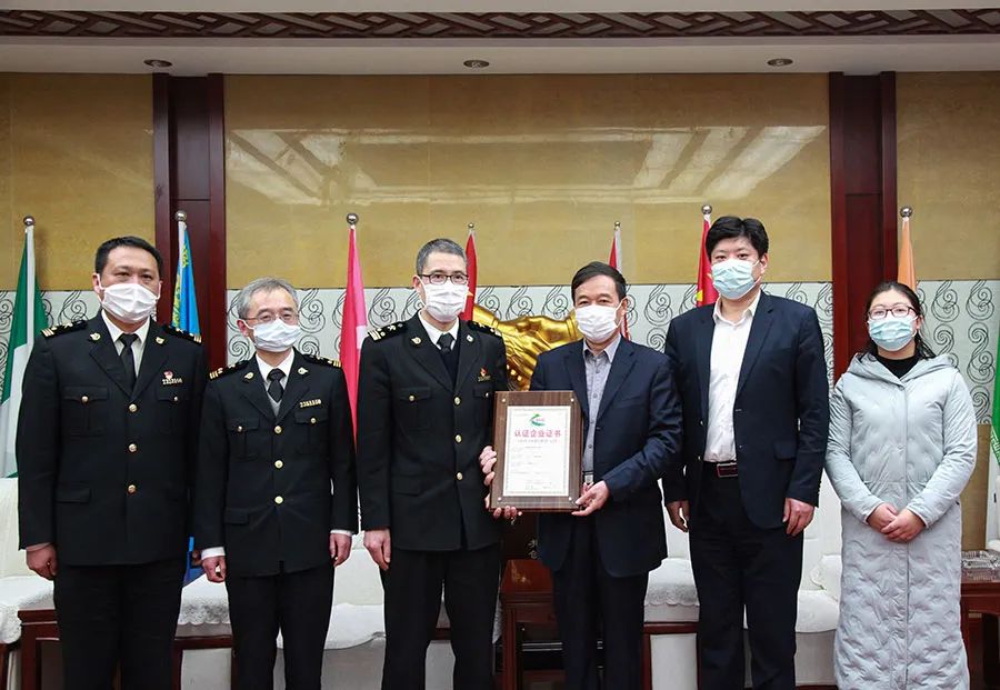 2021年1月19日南通海關駐海安辦事處楊占臣主任等一行專程到鵬飛頒發高級認證企業證書。